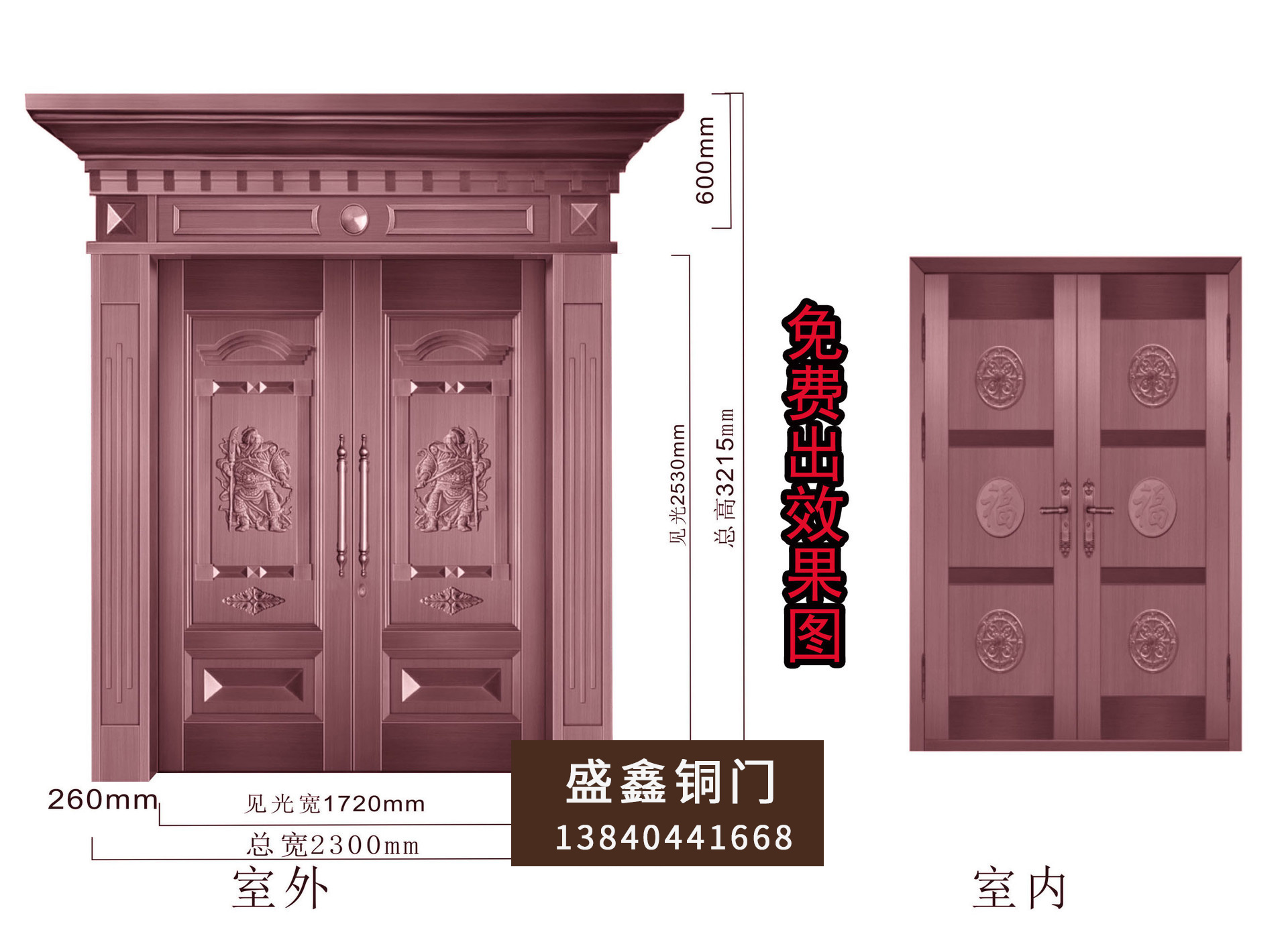 四、門頭尺寸:指銅門門頭尺寸大小,包括門頭高、門頭寬、常見(jiàn)的門頭造型為:平頭、尖頭、圓頭